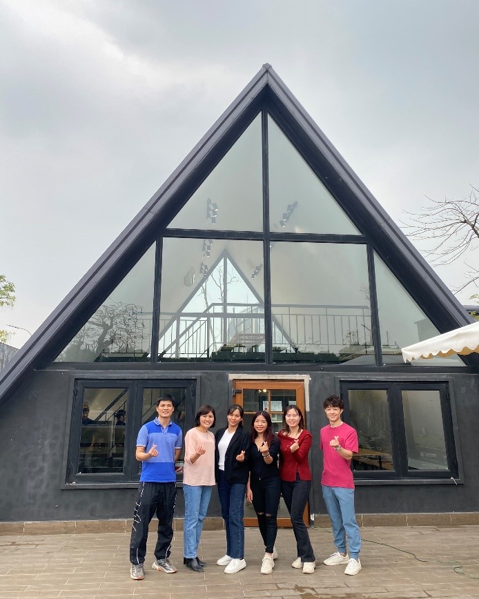 Tuy là một nhà máy nhưng chúng tôi thấy không gian rất yên bình vì ngoài khu sản xuất còn có khu Bungalow, hồ cá Koi, cây xanh rất gần gũi thiên nhiên. Chúng tôi nhận được sự đón tiếp nồng hậu của Giám đốc nhà máy và các anh chị nhân viên.