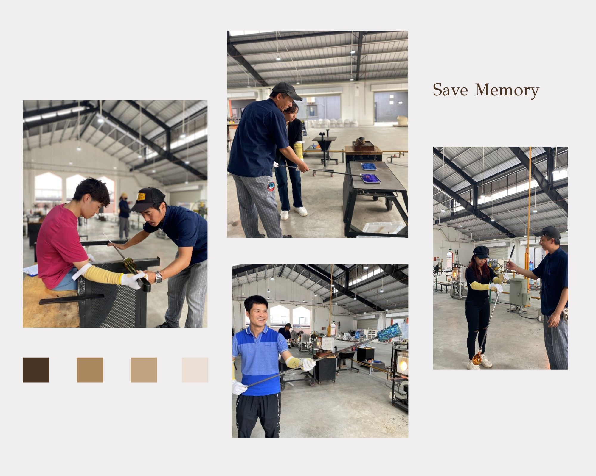 Tại khu vực sản xuất, chúng tôi thấy những người thợ lành nghề đang lấy thuỷ tinh nóng chảy, thổi và tạo ra sản phẩm hoàn toàn thủ công với những dụng cụ giản đơn như dao, kéo, ống thổi kim loại,… Từ đó các sản phẩm như đĩa, bát, ly, bình hoa, đồ trang trí các loại được ra đời mà không sử dụng tới dây chuyển sản xuất công nghiệp. Chúng tôi được hướng dẫn cách thổi và tạo hình ra những chiếc ly, lọ hoa. Tự tay chúng tôi đã hoàn thành được những sản phẩm đó dưới sự hướng dẫn của nhân viên Glass Craft. Khi nhận được các sản phẩm do chính mình tạo ra, chúng tôi cảm thấy rất vui.